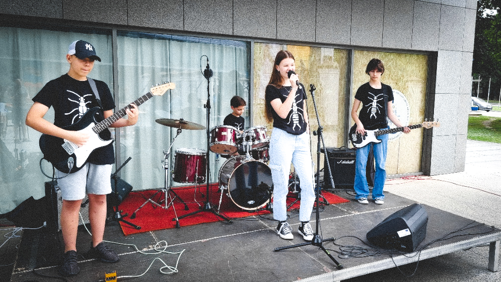 Ispred Kulturnog centra Osijek Uholaže su sudjelovale u otvorenju Osječkog ljeta kulture za najmlađe OLJKić izvedbom nekoliko pjesama. 1.7.2023.